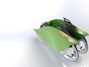 -Funny and beautiful. The sides are inspired in a “leaves ” cause the main concept must be a vehicle respectful of the environment. The result is really nice, is a complex surface with different angles and curves that with a metallic painting provide different colors.